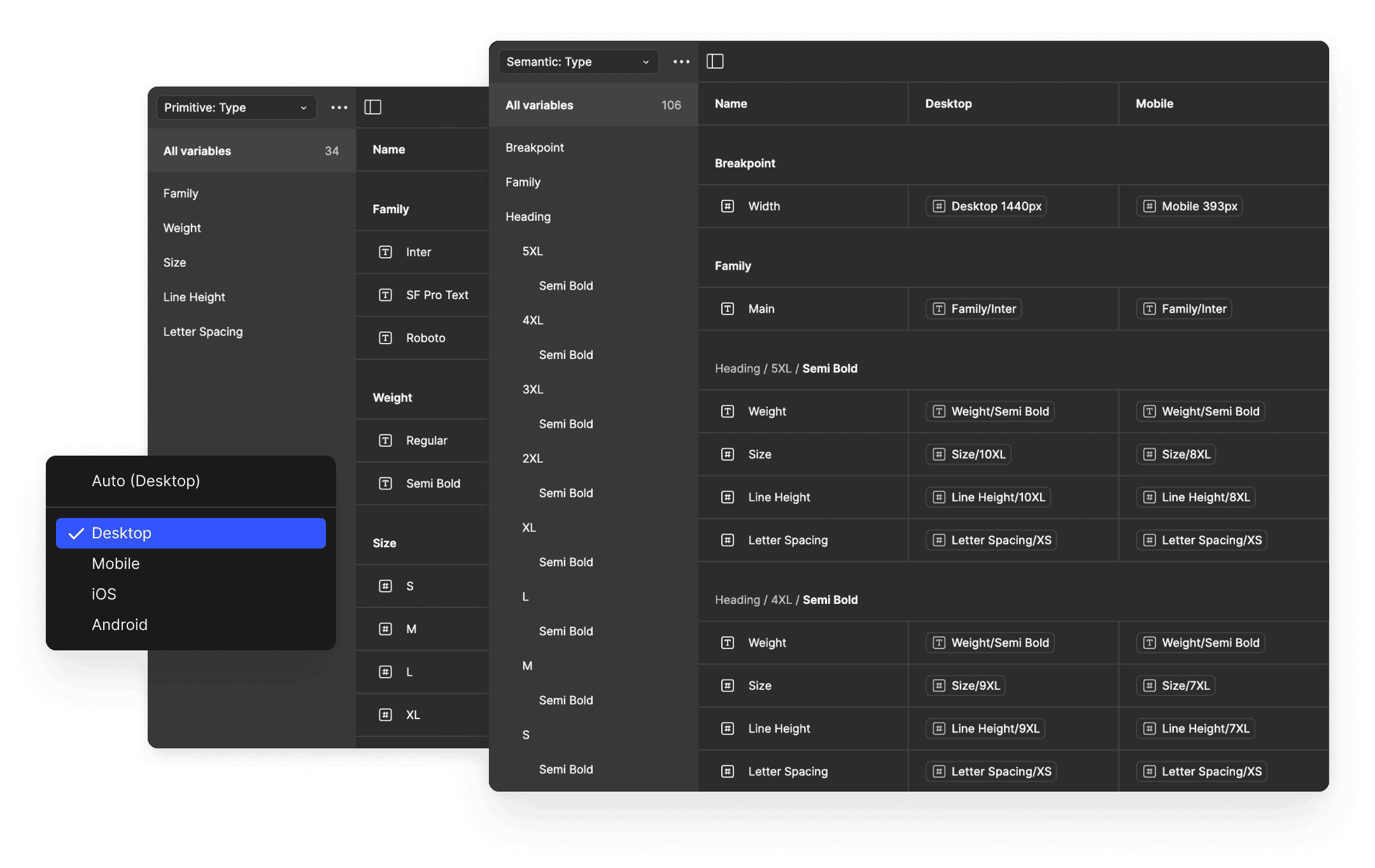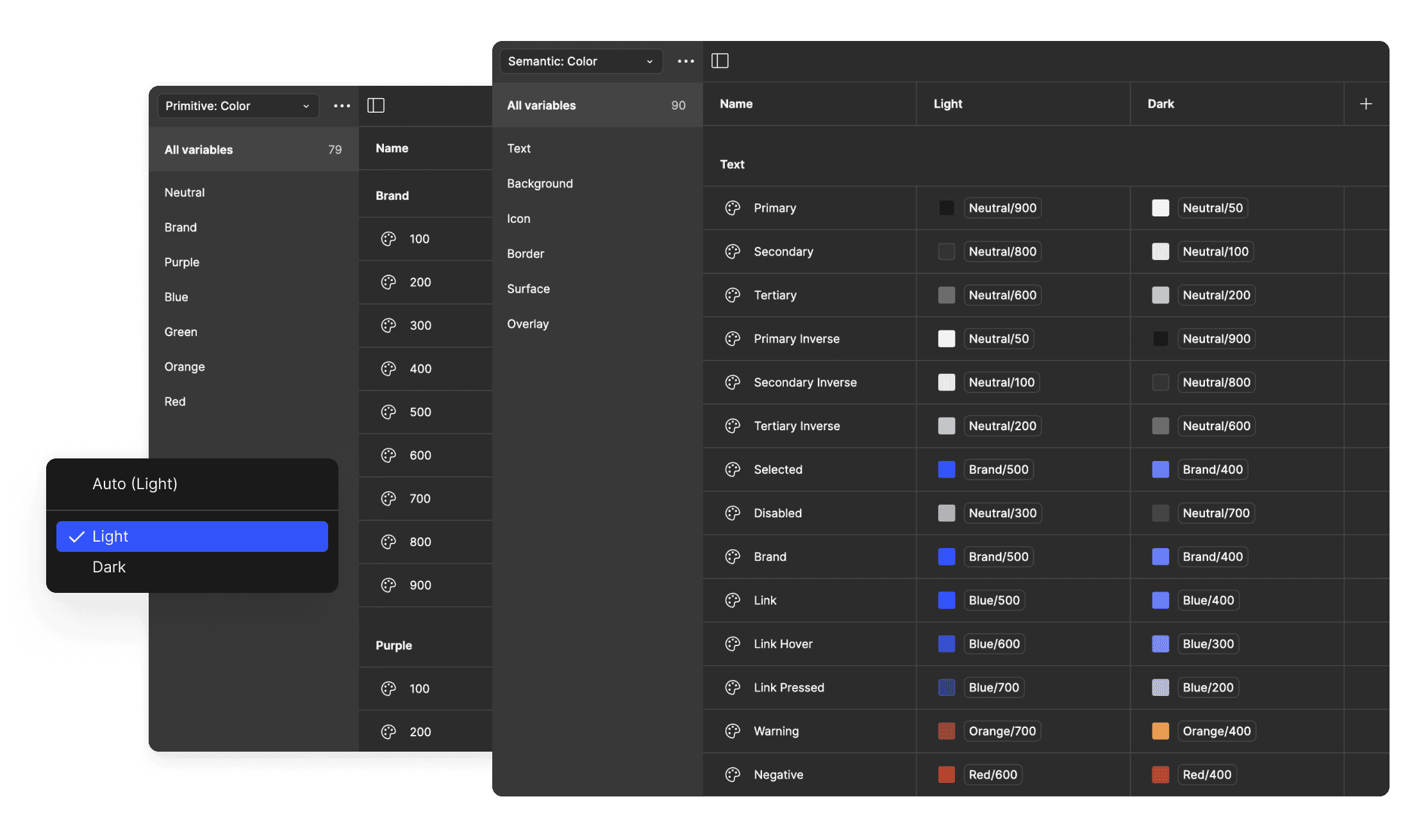 Use color in a meaningful way across your projects, toggle automatically between Light and Dark modes and watch updates ripple across every screen instantly.